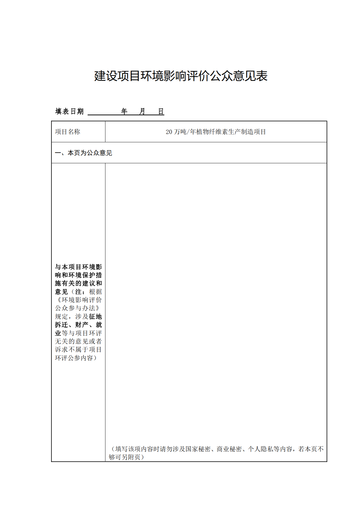 萬木植物纖維素項目公眾參與調(diào)查表